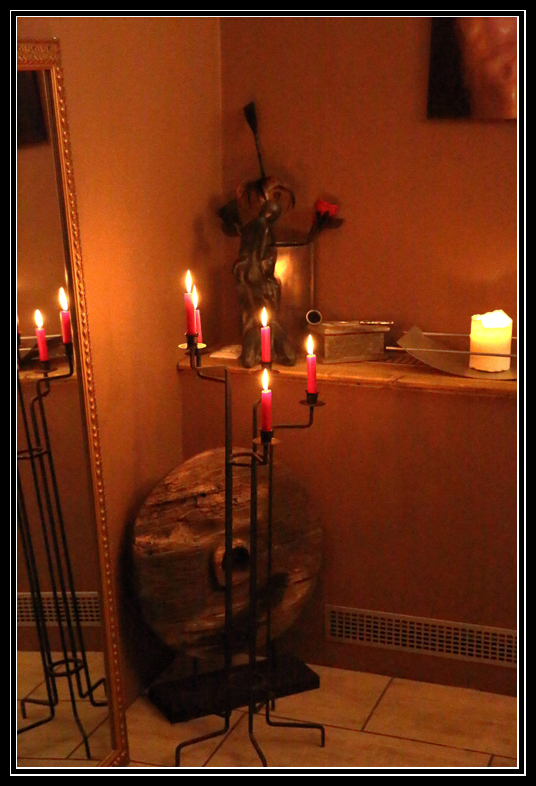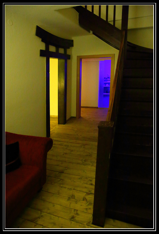 Wir betreten das Stiegenhaus, das sich uns nur im Kerzenlicht präsentiert und steigen hinauf in den ersten Stock, in dem sich uns gleich drei Themenräume auftun.